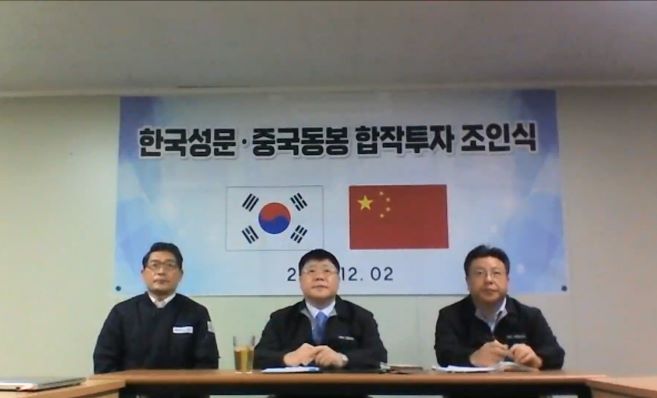 12月2日上午,公司與韓國成門公司以視頻會(huì)議形式舉行合資合作簽約儀式,雙方投資設(shè)立合資公司,實(shí)施新能源汽車濾波用薄膜電容器項(xiàng)目。公司董事長黨委書記、董事長黃明強(qiáng)與韓國成門公司代表理事辛浚燮分別代表雙方簽署合資合作協(xié)議。公司總經(jīng)理鮑俊華、副總經(jīng)理、財(cái)務(wù)總監(jiān)郭傳紅、董事會(huì)秘書李駿,韓國成門公司理事辛承燮、金鐘洛等分別在各自會(huì)場參加簽約儀式。