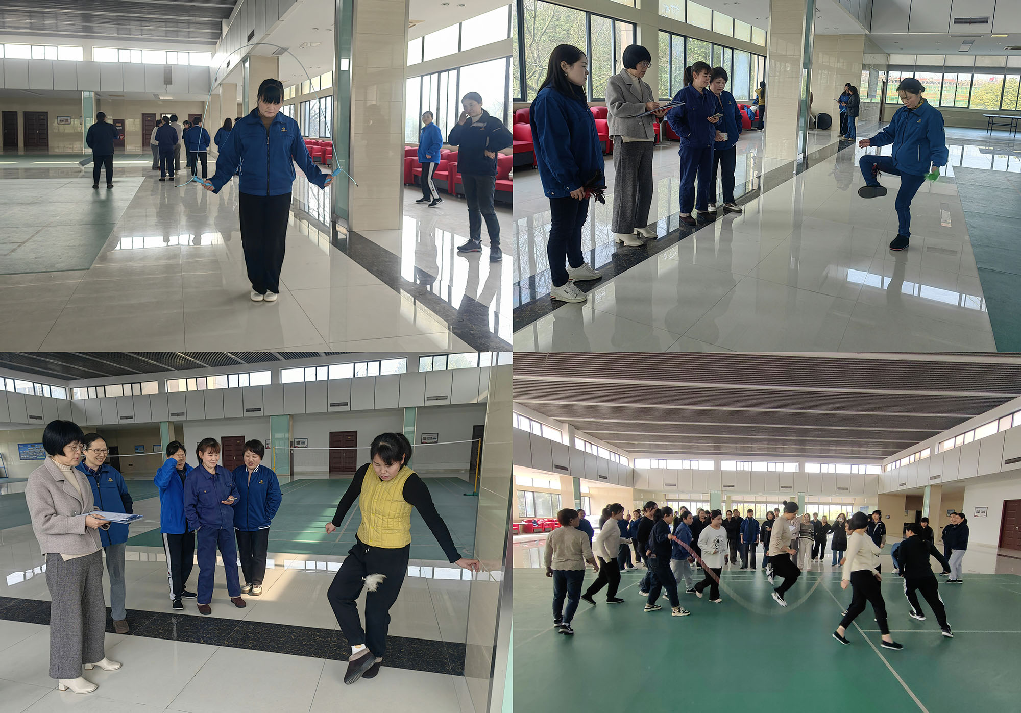當日上午,女工文體活動在一片熱烈的氛圍中拉開帷幕,吸引了來自公司機關及生產(chǎn)一線的 50 余名女職工踴躍參與。在單人跳繩比賽中,女職工們身輕如燕,腳尖快速點地,跳繩在她們手中飛速旋轉,令人目不暇接,現(xiàn)場歡聲笑語此起彼伏。踢毽子比賽同樣精彩紛呈,大家各顯神通,毽子在她們腳邊有節(jié)奏地跳動,展現(xiàn)出靈動的身姿。而 “十人八字” 集體跳繩項目更是將活動推向高潮。隨著裁判一聲令下,跳繩比賽正式開始,兩位甩繩選手動作整齊劃一,一根長繩快速旋轉,隊員們依次進入跳繩區(qū)完成跳躍。這一項目不僅考驗個人的反應速度與身體協(xié)調性,更需要團隊之間的默契配合,充分展現(xiàn)了女職工們團結拼搏的精神風貌。